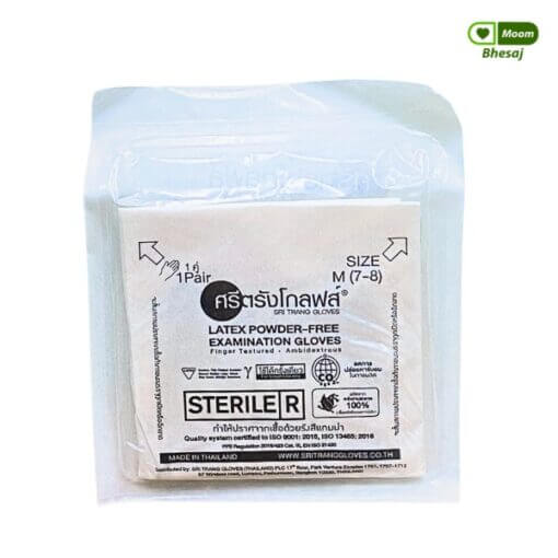 ถุงมือยางไม่มีแป้งศรีตรัง แบบซอง 1คู่ ถุงมือทางการแพทย์ปลอดเชื้อ ชนิดใช้ครั้งเดียว มาตรฐานคุณภาพสำหรับการใช้งานที่ต้องการความปลอดภัยสูง